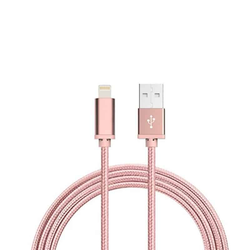 2M Kabel Lightning Laddare till iPhone / iPad Nylon Quick Charge Rosé Guld