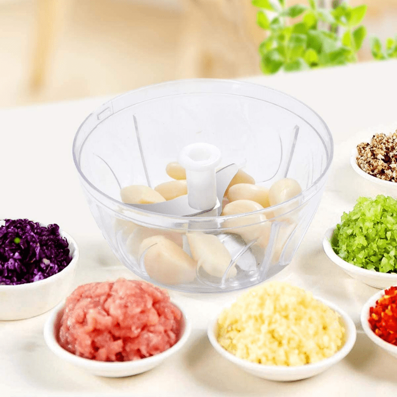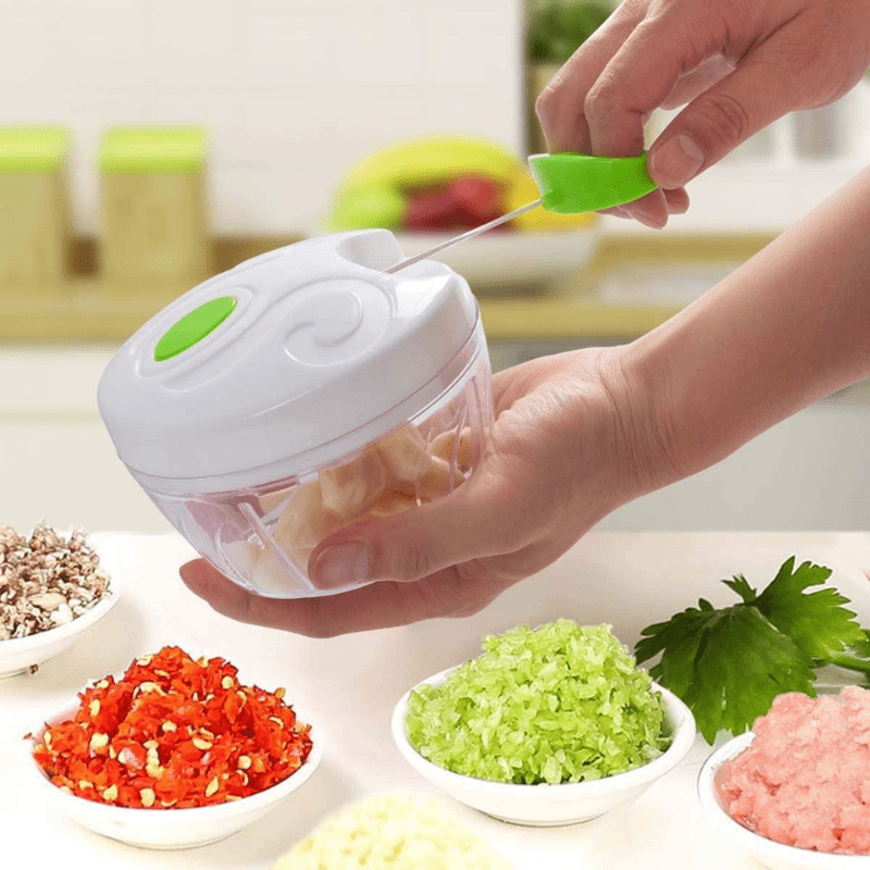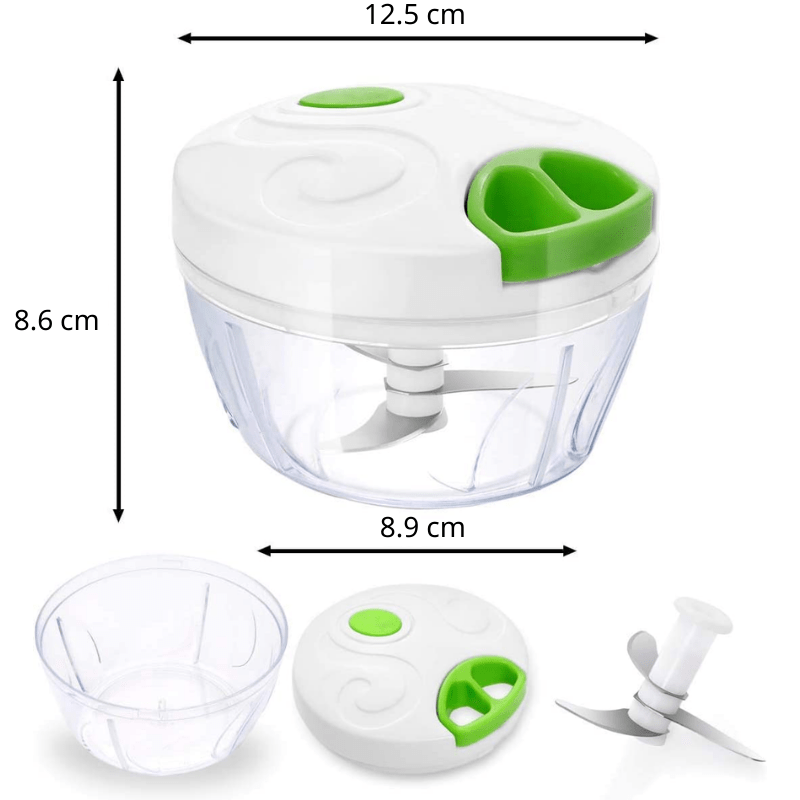 Smidig grönsakshackare med dragfunktion. Behållaren rymmer hela 500 ml och allt du behöver göra är att lägga i det du vill hacka och sedan dra i snöret till önskad storlek – svårare än så är det inte. Bladen är vassa och hackar lätt ner grönsaker som gurka, vitlök, lök och annat.