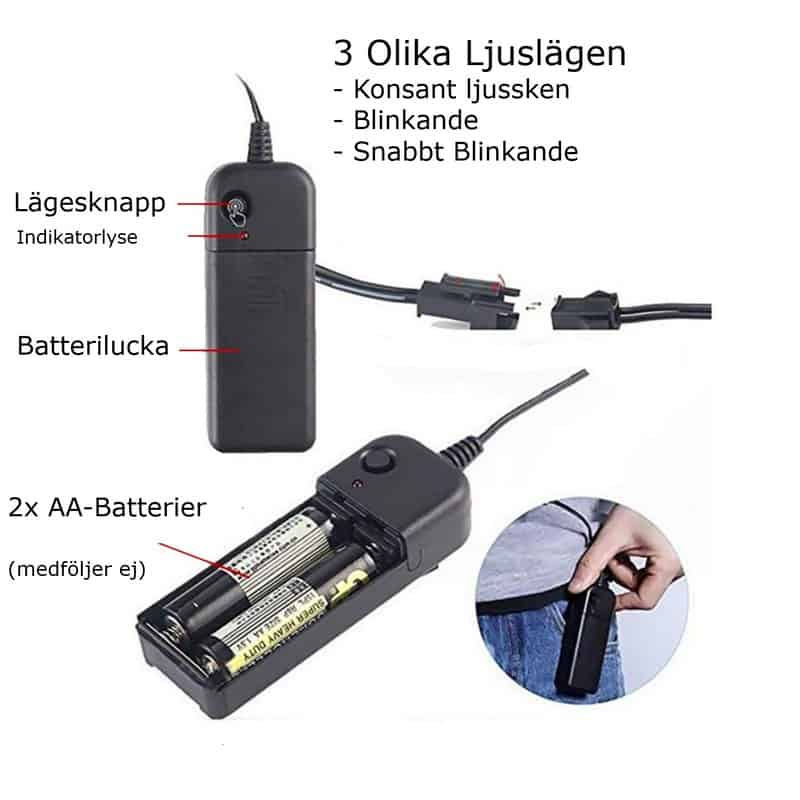 OBS: Drivs av 2x AA-batterier – medföljer inte