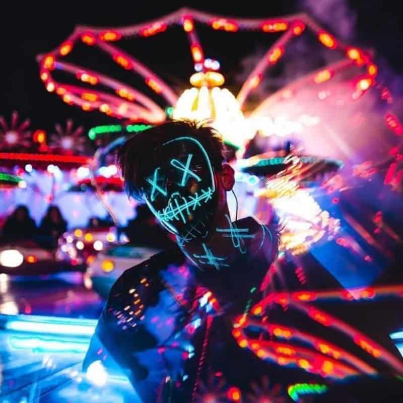 Denna mask med motiv ifrån filmen ”The Purge” kommer toppa alla halloweenfester i år! Masken är utrustad med LED-belysning vilket minst sagt ger ett unikt utseende. Det går att välja mellan olika ljusinställningar så att LED-dioderna kan både blinka långsamt och snabbt, eller lysa konstant. Masken täcker hela ansiktet men har självklart hål för både ögon och mun för att ge full komfort.