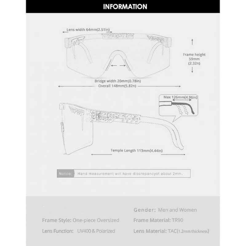 Dessa solglasögon är dimfria, hydrofobiska, smutssäkra och regntåliga! HD-linserna har UV400-Skydd som hjälper till att skydda dina ögon mot potentiellt skadligt solljus. De är självklart unisex och är optimerade för sport, men funkar självklart lika bra att använda casually till vardags